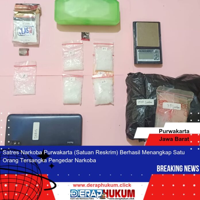 PURWAKARTA-JABAR | Deraphukum.clik | Satuan Reserse Narkoba (Sat Res Narkoba) Polres Purwakarta kembali berhasil mengungkap kasus peredaran narkoba dengan mengamankan seorang tersangka dan barang bukti sabu seberat 41,57 gram.