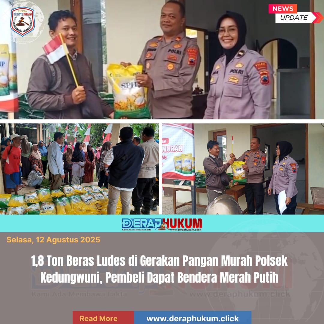 1,8 Ton Beras Ludes di Gerakan Pangan Murah Polsek Kedungwuni, Pembeli Dapat Bendera Merah Putih
