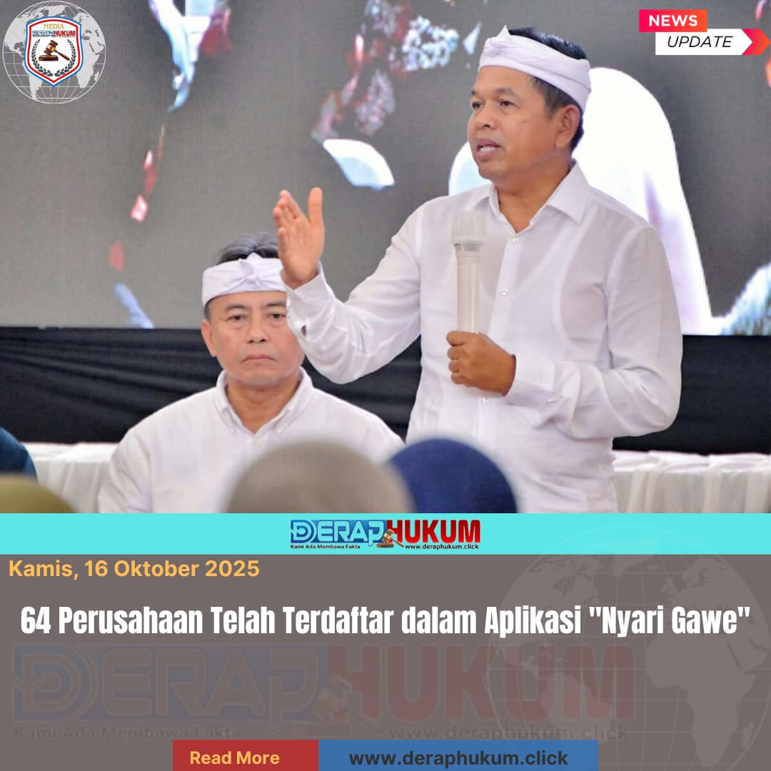 | Deraphukum.click |Pencari kerja sudah bisa melamar pekerjaan lewat aplikasi ketenagakerjaan “Nyari Gawe”. Sebanyak 64 perusahaan telah terdaftar dalam aplikasi buatan Pemerintah Daerah Provinsi Jawa Barat (Pemdaprov Jabar) tersebut.