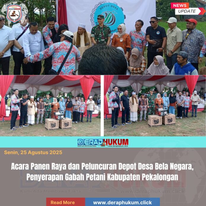 Pekalongan,Jawa Tengah | Deraphukum.click | 24 Agustus 2025 — Dalam rangka meningkatkan kedaulatan pangan dan mendukung kesejahteraan petani, acara Panen Raya dan Peluncuran Depot Desa Bela Negara digelar hari Sabtu 23 Agustus 2025 ,di Lapangan SumurJomblangbogo,Kecamatan Bojong, Kabupaten Pekalongan. Acara ini dihadiri oleh berbagai pejabat penting, termasuk utusan perwakilan dari Menteri Pertahanan Mayjen Rio, Kapolsek Bojong, serta anggota Persatuan Perangkat Desa Indonesia (PPDI) Merah Putih dan para petani
