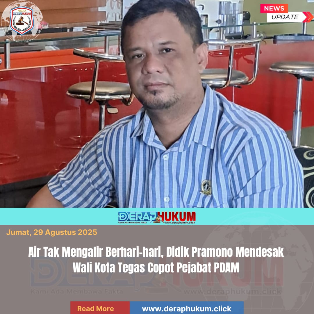 Menurutnya, kondisi ini sangat merugikan masyarakat. “Kasihan warga, sudah bayar pelayanan tapi air tidak keluar. Kalau tidak bayar, dicabut. Ini jelas tidak adil,” tegas Didik, Kamis (28/8).
