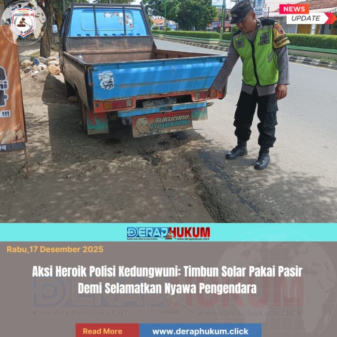 Pekalongan,Jawa Tengah | Deraphukum.click | Polres Pekalongan – Polda Jateng – Respon cepat ditunjukkan personel Polsek Kedungwuni saat menerima laporan warga terkait adanya tumpahan bahan bakar solar yang membasahi aspal di Jalan Raya Bebekan, Kedungwuni, Selasa (16/12/2025). Ceceran solar tersebut dinilai sangat membahayakan karena membuat kondisi jalan menjadi licin dan rawan menyebabkan kecelakaan lalu lintas.