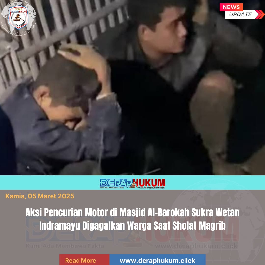 INDRAMAYU,Jawa Barat | Deraphukum.click | Aksi pencurian sepeda motor yang terjadi di area parkir Masjid Al-Barokah berhasil digagalkan oleh warga pada Rabu (04/03/2026) saat waktu sholat Magrib.