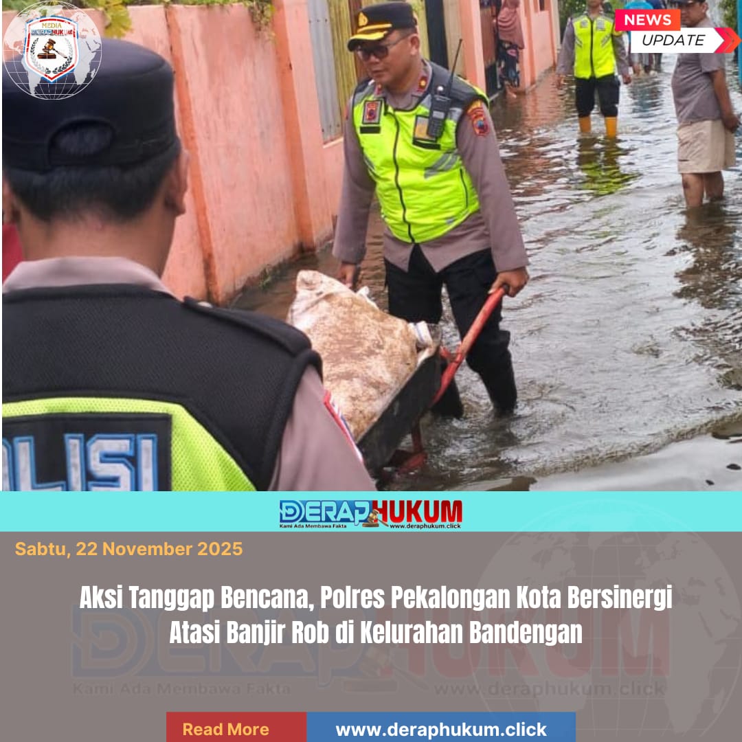 Pekalongan Kota, | Deraphukum.click | Polres Pekalongan Kota – Polda Jateng – Upaya penanggulangan banjir rob di wilayah pesisir kembali dilakukan melalui kerja bakti bersama personel Polri, TNI, dan masyarakat di Kelurahan Bandengan, Kecamatan Pekalongan Utara. Kegiatan gotong royong ini berlangsung pada Jumat (21/11/2025).