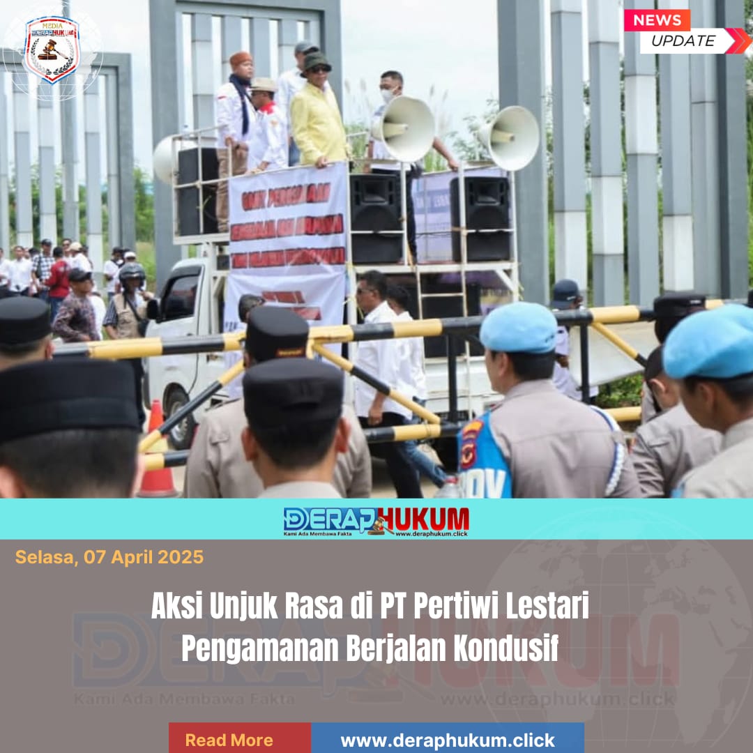 Karawang,Jawa Barat | deraphukum.click | Aparat dari Polres Karawang melaksanakan pengamanan aksi unjuk rasa yang dilakukan oleh DPD APDESI Merah Putih Jawa Barat di area PT Pertiwi Lestari, Desa Wanajaya, Telukjambe Barat, Senin (6/4/2026).