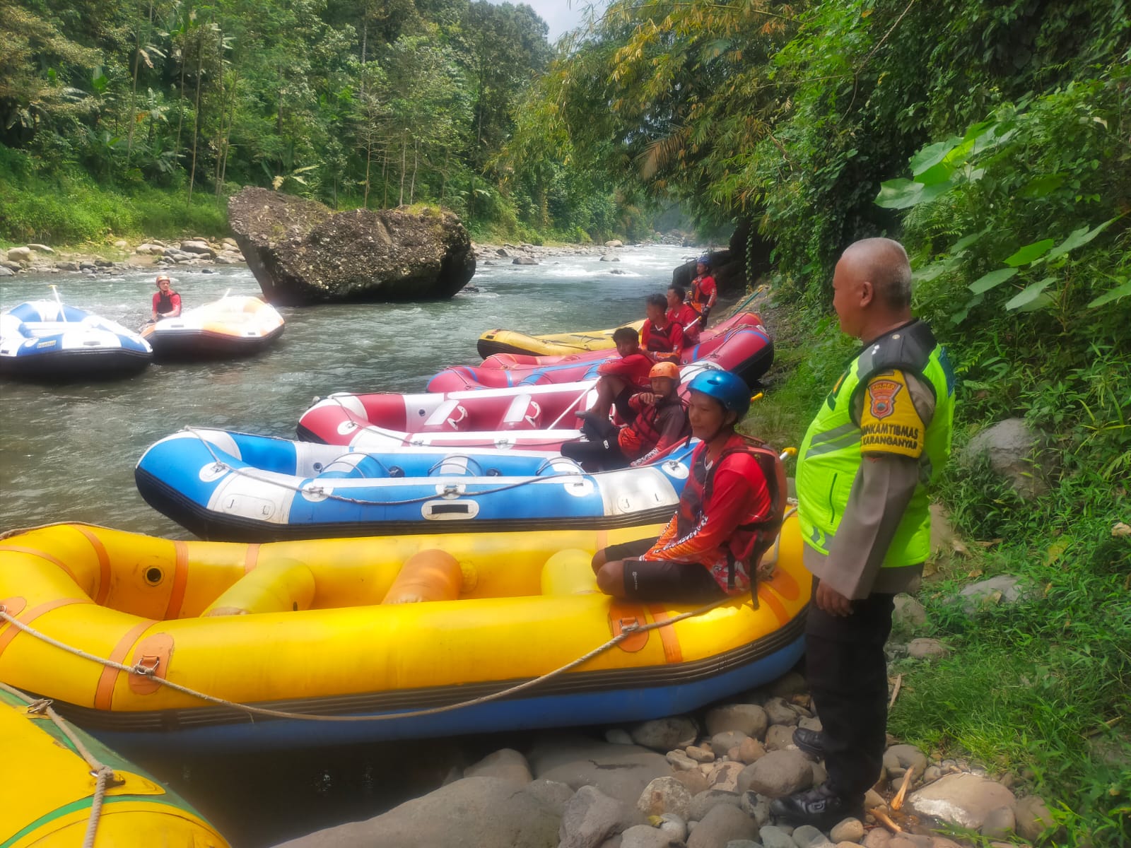 > “Kami mengimbau pengelola untuk selalu waspada terhadap perubahan cuaca. Jika debit air sungai meningkat dan air berubah menjadi keruh, jangan memaksakan melakukan trip arung jeram,” tegas Aiptu Darudin.
