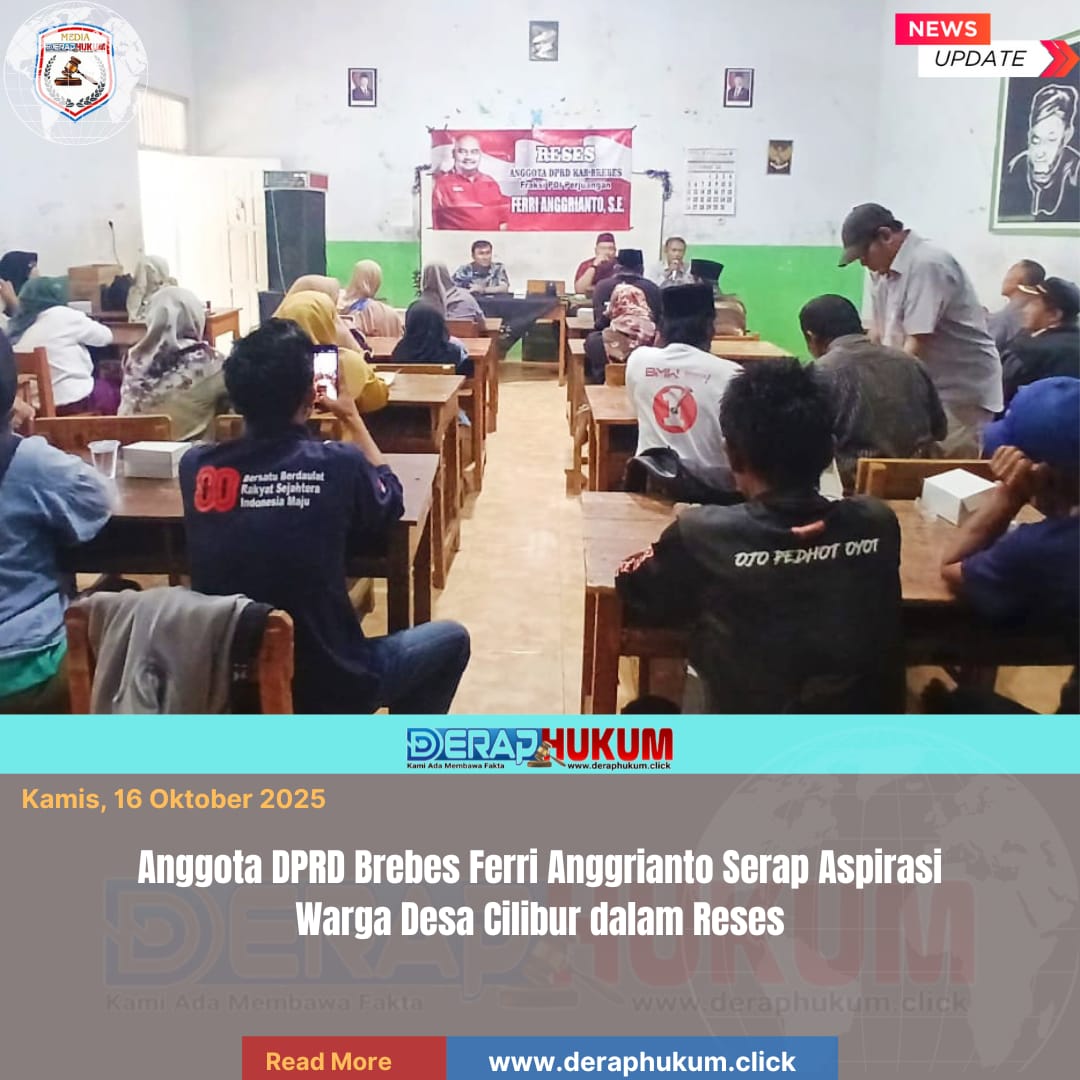 Brebes,Jawa Tengah | Deraphukum.click | Anggota DPRD Kabupaten Brebes dari Fraksi PDI Perjuangan, Ferri Anggrianto, SE, yang juga menjabat sebagai Ketua Komisi IV DPRD Brebes, melaksanakan kegiatan reses di Desa Cilibur, Kecamatan Paguyangan, Rabu (15/10/2025).