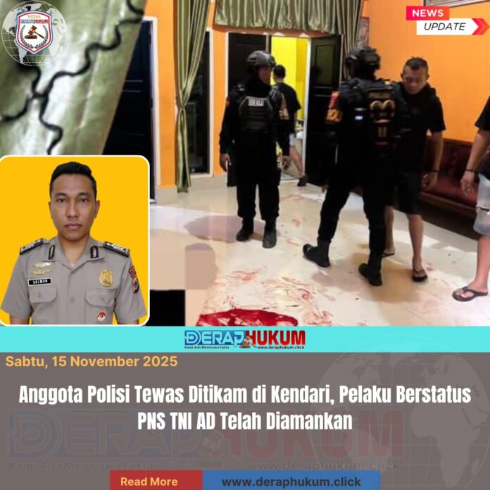 Kendari, Sulawesi Tenggara | Deraphukum.click | Seorang anggota Polri tewas setelah ditikam di Jalan Budi Utomo Lorong Merak, Kelurahan Mataiwoi, Kecamatan Wua-Wua, Kota Kendari, Sulawesi Tenggara, pada Sabtu (15/11/2025) sekitar pukul 02.21 WITA.