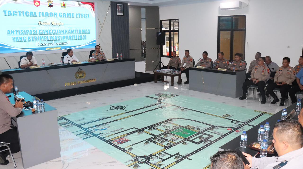 Pekalongan,Jawa Tengah | Deraphukum.click | olres Pekalongan – Polda Jateng – Dalam rangka mengantisipasi potensi gangguan kamtibmas yang berimplikasi kontijensi, Polres Pekalongan menggelar kegiatan Tactical Floor Game (TFG), Selasa (21/4/2026) sore di Aula Setia Polres Pekalongan.