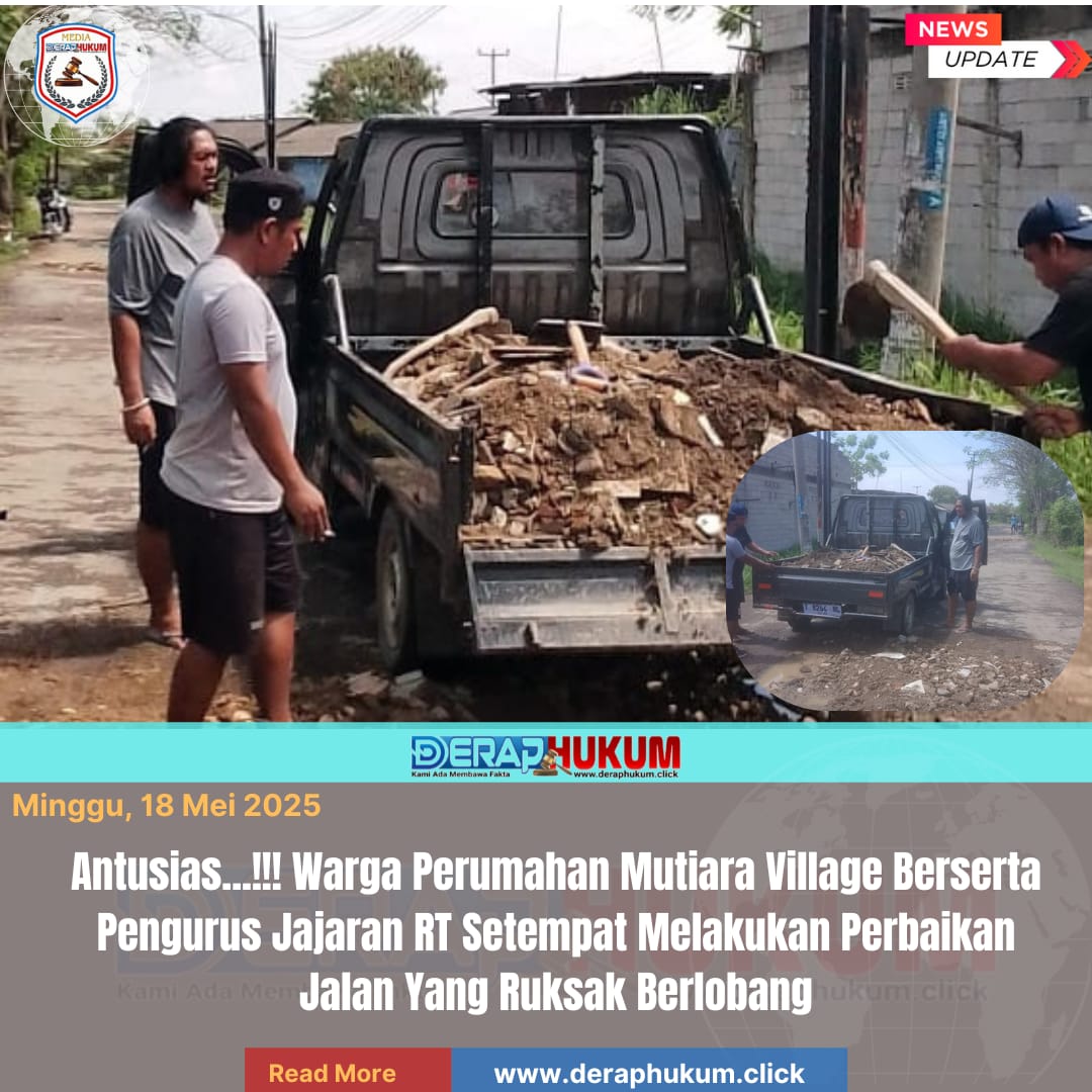 Karawang,Jawa Barat l DerapHukum.Click l Pangulah kota baru warga beserta masyarakat antusias melakukan kerja bakti perbaikan jalan yang ruksak dan berlobang Karawang 18/ 05/ 2025