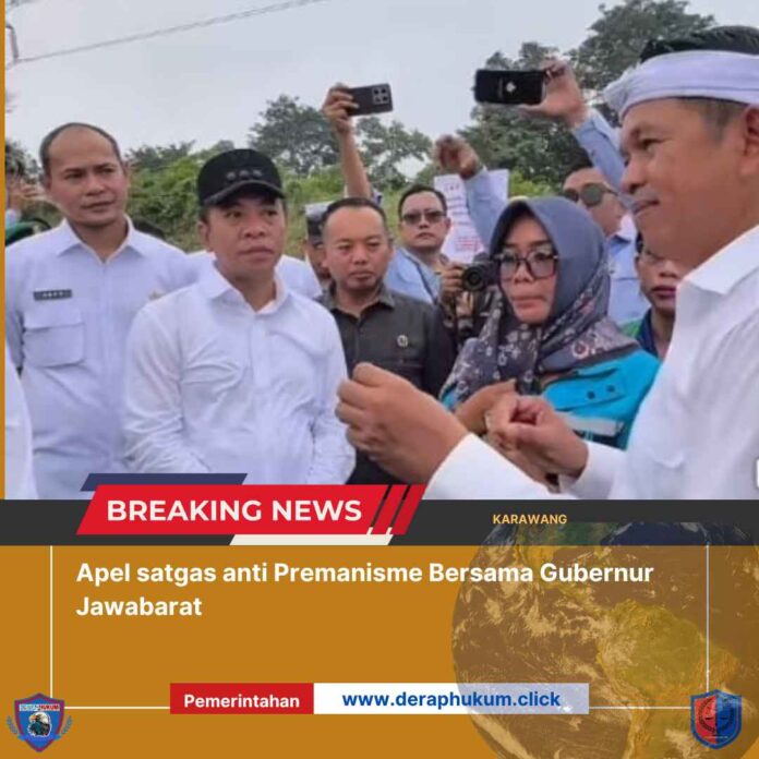 KARAWANG JAWA BARAT | Deraphukum.click | Pagi tadi, bupati Karawang H Aep Saepulloh hadir dalam apel Satgas Anti Premanisme bersama Gubernur Jawa Barat, Kapolda Jawa Barat, Pangdam, Ketua Komisi 1 DPRD Provinsi Jawa Barat, Sekda Provinsi Jawa Barat, serta unsur Muspida Kabupaten Karawang, Camat dan juga Kepala OPD di Area Aspirasi KIIC Karawang.