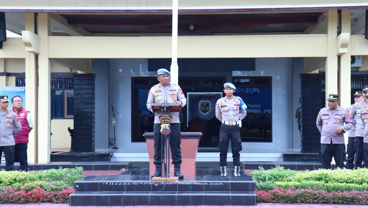 “Saya minta tolong, laksanakan tugas dengan profesional, proporsional, dan penuh hati nurani. Jangan sampai saya jumpai anggota yang bertindak sewenang-wenang seperti pemerasan atau penganiayaan. Layani masyarakat dengan baik sesuai tugas pokok kita sebagai pelindung, pengayom, dan pelayan,” tambahnya.