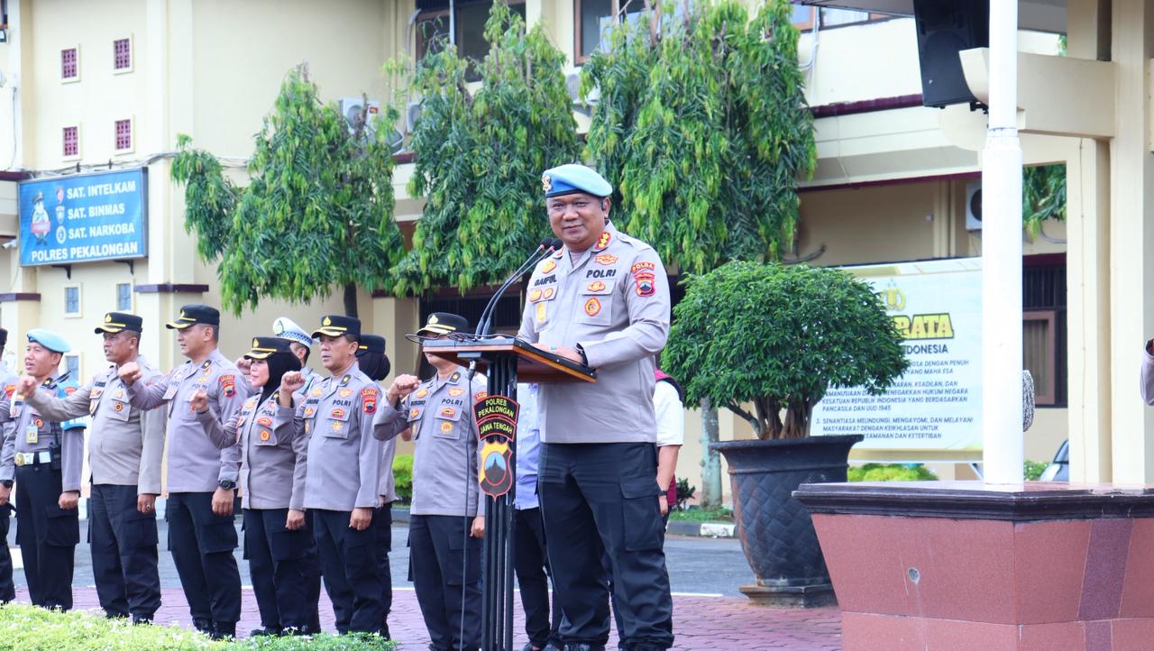 Apel yang berlangsung singkat namun padat ini dihadiri langsung oleh Kapolres Pekalongan AKBP Rachmad C. Yusuf, S.I.K., M.Si., Wakapolres, jajaran Pejabat Utama (PJU), hingga para Kapolsek.