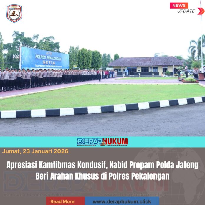 PEKALONGAN, Jawa Tengah | DerapHukum.click | Polres Pekalongan, Polda Jateng, Kabid Propam Polda Jateng Kombes Pol Saeful Anwar, S.Sos., S.I.K., M.H., memberikan pengarahan tegas kepada seluruh personel Polres Pekalongan dalam apel khusus di halaman Mapolres setempat, Kamis (22/01/2026) siang.