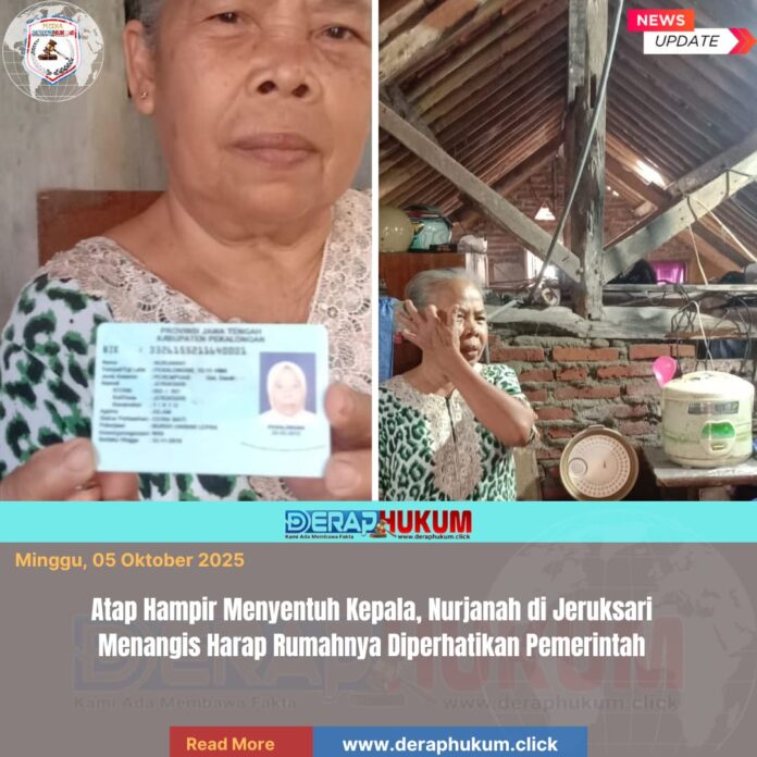 Pekalongan,Jawa Tengah | Deraphukum.click | Di tengah kehidupan yang serba sederhana, Nurjanah (61), warga Jeruksari RT 002 RW 001, Kecamatan Tirto, Kabupaten Pekalongan, hanya bisa menahan haru setiap kali menatap rumah tuanya yang semakin memprihatinkan.