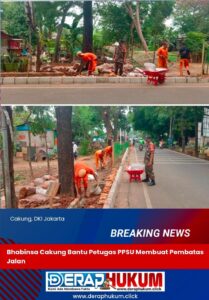 CAKUNG-DKI JAKARTA | Deraphukum.click | – DerapHukum.click – Kodim 0505/Jakarta Timur – Bertempat di Jalan Raya Penggilingan RW 10 Kelurahan Penggilingan Kecamatan Cakung Jakarta Timur, Babinsa Koramil 06/Cakung membantu petugas PPSU melaksanakan kegiatan pembangunan pembatas jalan raya, Jumat (17/01/25).