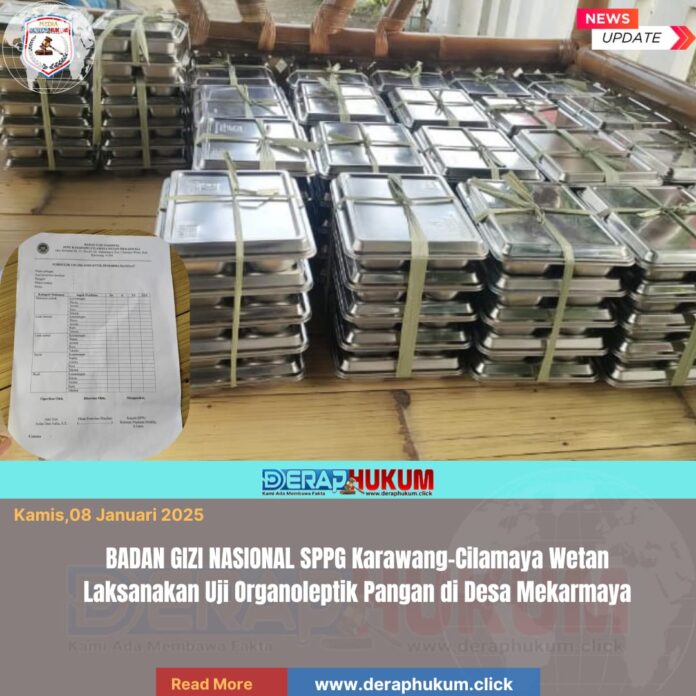 Karawang,Jawa Barat | deraphukum.click |— Badan Gizi Nasional melalui SPPG Karawang – Cilamaya Wetan melaksanakan kegiatan Uji Organoleptik kepada penerima manfaat pada Kamis, 08 Januari 2026. Kegiatan ini merupakan bagian dari evaluasi mutu pangan yang disalurkan kepada masyarakat.