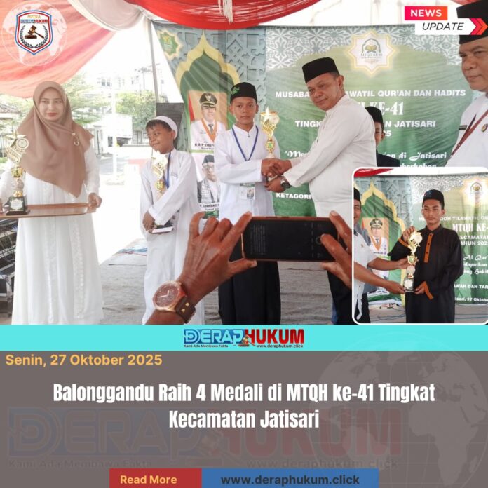 Jatisari, Karawang, Jawa Barat | Deraphukum.click | Kafilah Desa Balonggandu sukses menorehkan prestasi membanggakan pada ajang Musabaqoh Tilawatil Qur’an dan Hadist (MTQH) ke-41 tingkat Kecamatan Jatisari Tahun 2025 yang digelar pada Senin (27/10/2025).