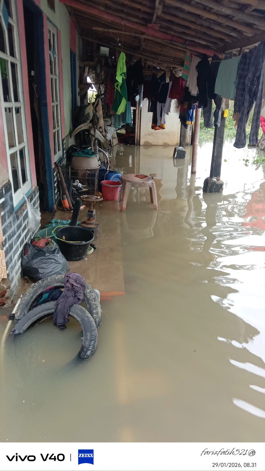 “Air masuk ke rumah sejak subuh, barang-barang sudah kami angkat seadanya. Kalau hujan turun lagi, air bisa makin naik,” ujarnya.