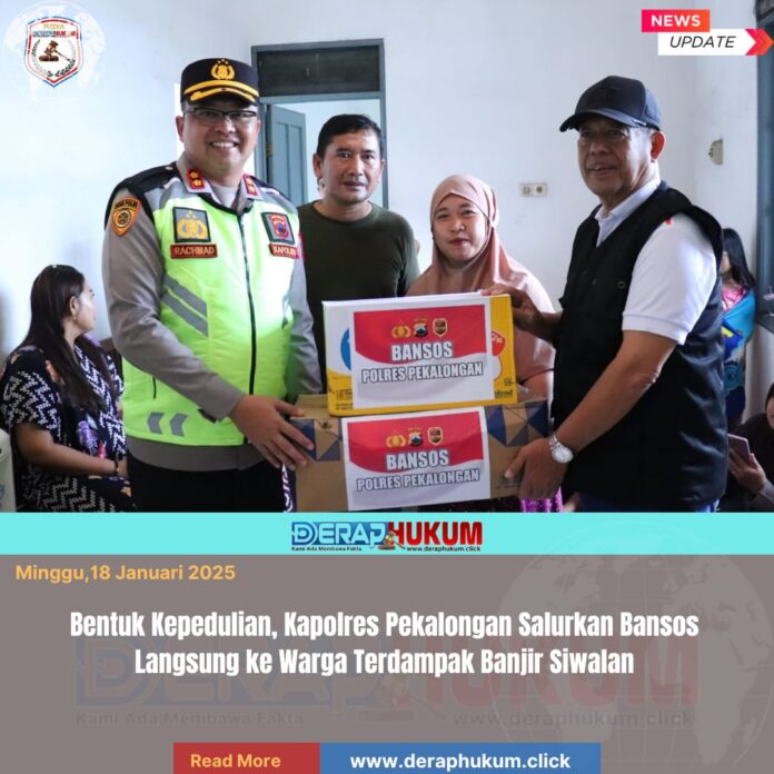 Pekalongan,Jawa Tengah | Deraphukum.click | Polres Pekalongan – Polda Jateng – Polres Pekalongan menunjukkan aksi nyata kepedulian terhadap sesama di tengah musibah banjir yang melanda wilayah Desa Sipait, Kecamatan Siwalan. Kapolres Pekalongan AKBP Rachmad C. Yusuf, S.I.K., M.Si. turun langsung menembus genangan air untuk menyalurkan bantuan sosial (bansos) kepada warga yang terdampak, Sabtu (17/1/2026).