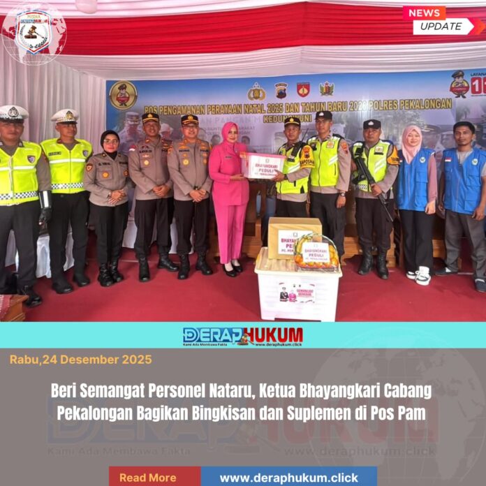 Pekalongan,Jawa Tengah | Deraphukum.click | Polres Pekalongan – Polda Jateng – Dukungan moril terus mengalir bagi para personel yang bertugas mengamankan momen Natal 2025 dan Tahun Baru 2026. Kapolres Pekalongan AKBP Rachmad C. Yusuf, S.I.K., M.Si., bersama Ketua Bhayangkari Cabang Pekalongan, Ny. Rosna Rachmad, melakukan kunjungan maraton ke sejumlah titik pos pengamanan, Selasa (23/12/2025).