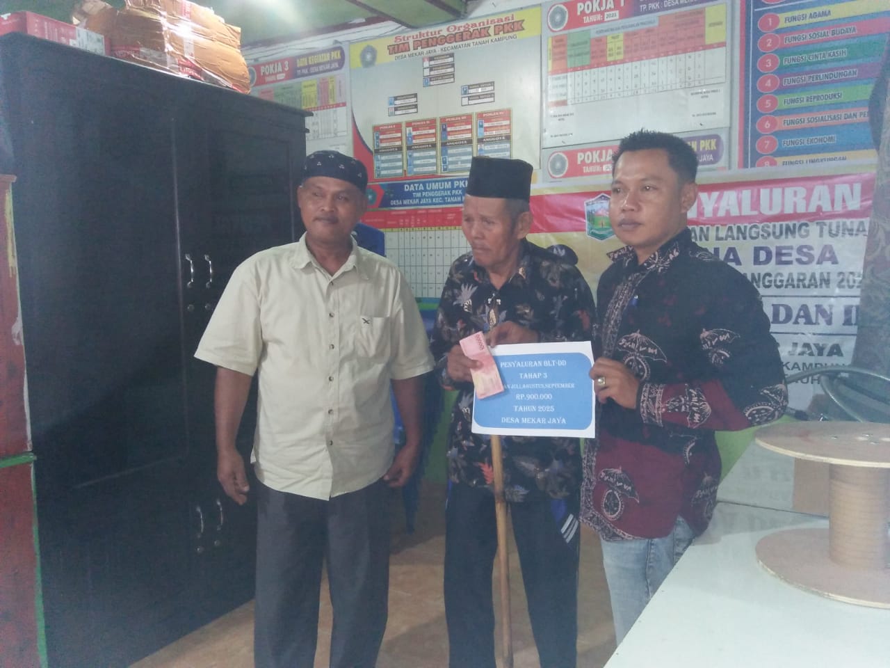 Kepala Desa Mekar Jaya, Hamzal, mengatakan bahwa BLT-DD tahap ketiga ini diserahkan secara langsung kepada warga.