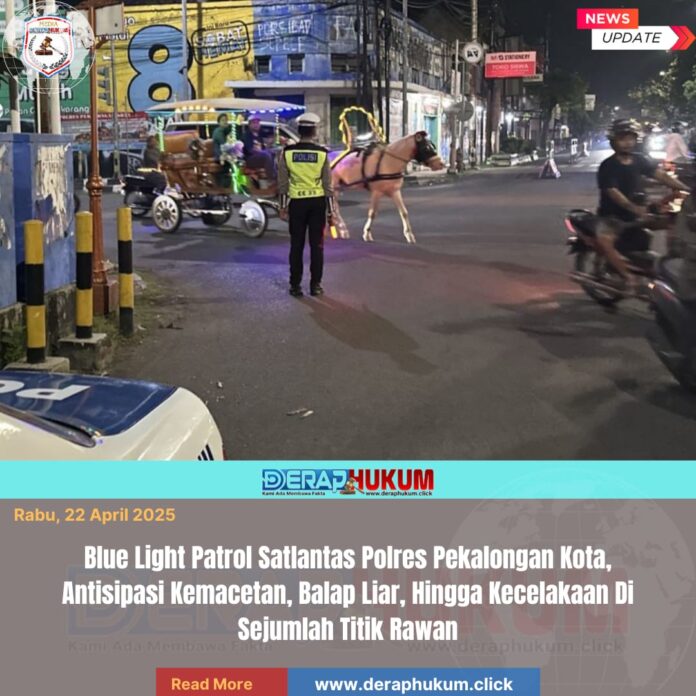 Pekalongan Kota, | Deraphukum.click | Polres Pekalongan Kota – Polda Jateng – Polres Pekalongan Kota, Polda Jawa Tengah melalui jajaran Satuan Lalu Lintas (Satlantas) melaksanakan kegiatan Blue Light Patrol dalam rangka menjaga keamanan, keselamatan, ketertiban, dan kelancaran lalu lintas (Kamseltibcarlantas), Selasa (21/4/2026) malam.