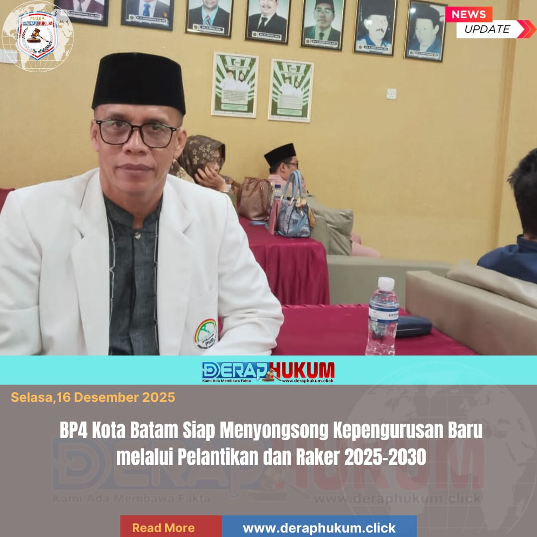 Batam, | Deraphukum.click | Menjelang berakhirnya masa kepengurusan sebelumnya, Badan Penasihatan, Pembinaan, dan Pelestarian Perkawinan (BP4) Kota Batam melakukan langkah konsolidasi organisasi dengan menyiapkan pelantikan pengurus serta Rapat Kerja (Raker) untuk masa bakti 2025–2030. Persiapan tersebut ditandai dengan pembentukan panitia pelaksana yang akan mengoordinasikan seluruh rangkaian kegiatan secara terstruktur dan profesional.