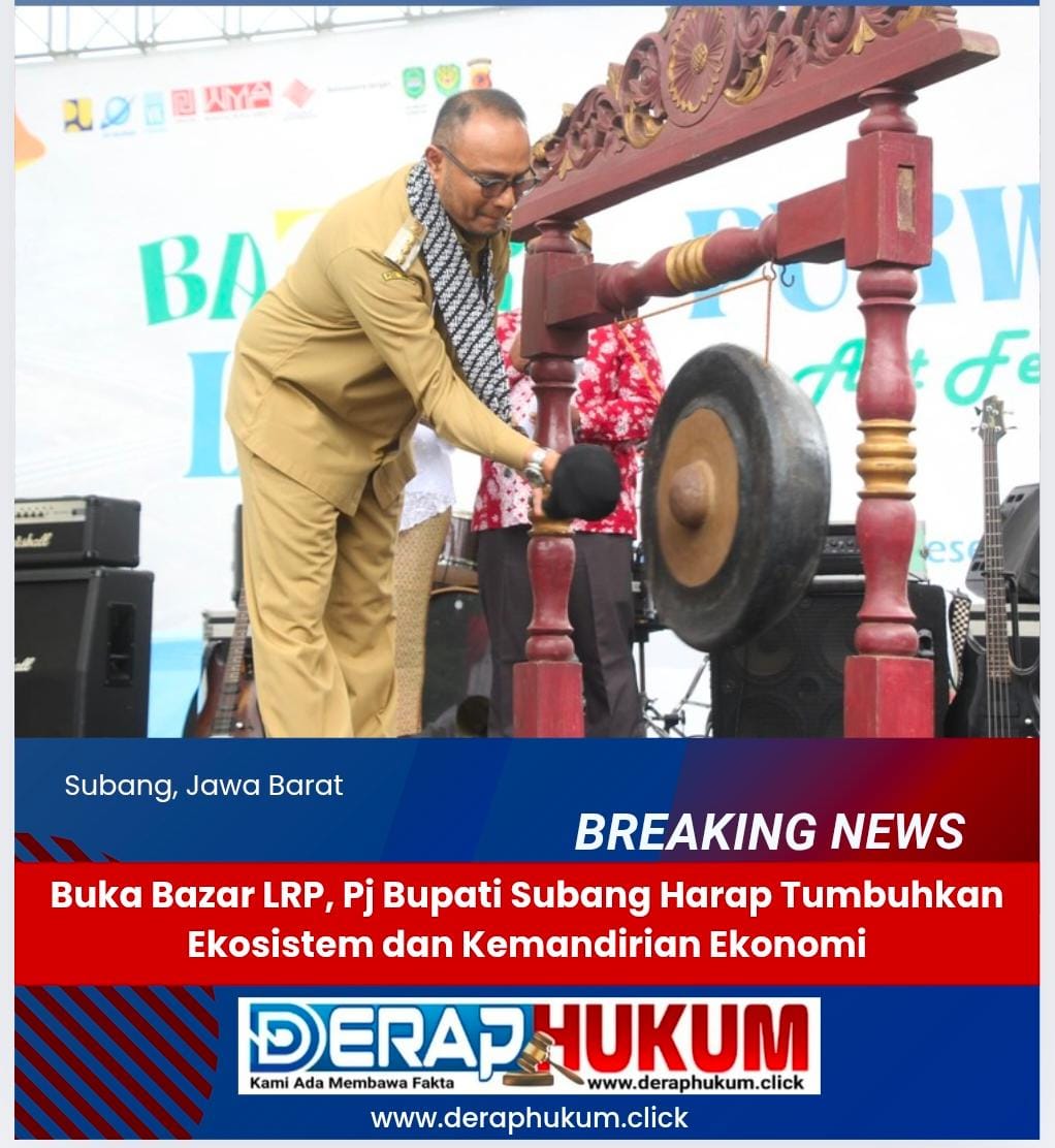 SUBANG | Deraphukum.click | Penjabat Bupati Subang Dr. Drs. Imran, M.Si.,MA.Cd., bersama Dandim 0605 Subang Letkol Inf Achmad Zakki, S.Sos.,MM., M.Ipol., hadir dalam gelaran Bazar Livelihood Restoration Program (LRP) dan Purwadadi Art Fest 2024, bertempat di Alun-Alun Kecamatan Purwadadi, Selasa (31/12/2024).
