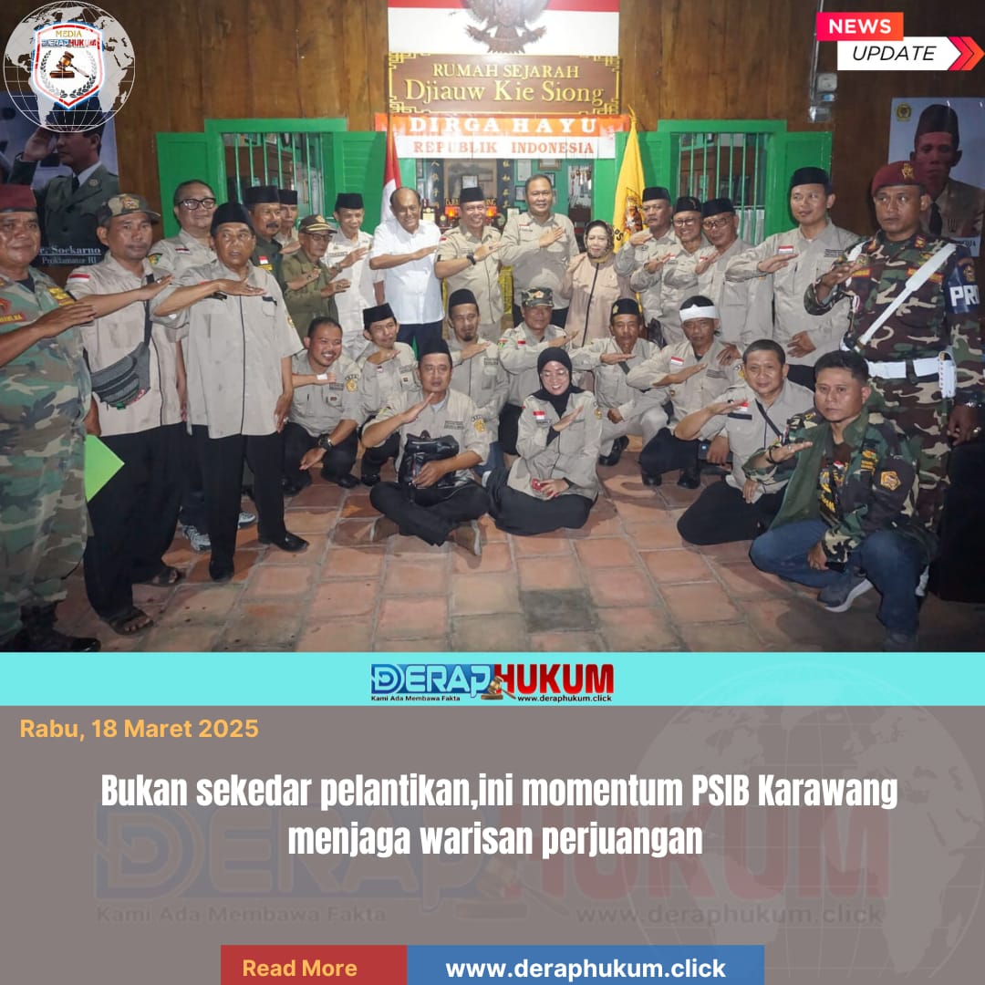 KARAWANG,Jawa Barat | deraphukum.click | Di sebuah bangunan bersejarah yang menjadi saksi bisu perjalanan bangsa, Rumah Sejarah Djiauw Kie Siong di Rengasdengklok, pelantikan pengurus DPC Pejuang Siliwangi Indonesia Bersatu (PSIB) Kabupaten Karawang periode 2026–2031 berlangsung dengan nuansa berbeda, Selasa (17/3/2026).