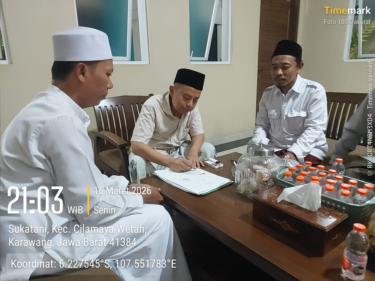 Prosesi penandatanganan Akta Ikrar Wakaf dipandu langsung oleh pihak Kantor Urusan Agama Kecamatan Cilamaya Wetan sesuai dengan ketentuan administrasi wakaf yang berlaku.
