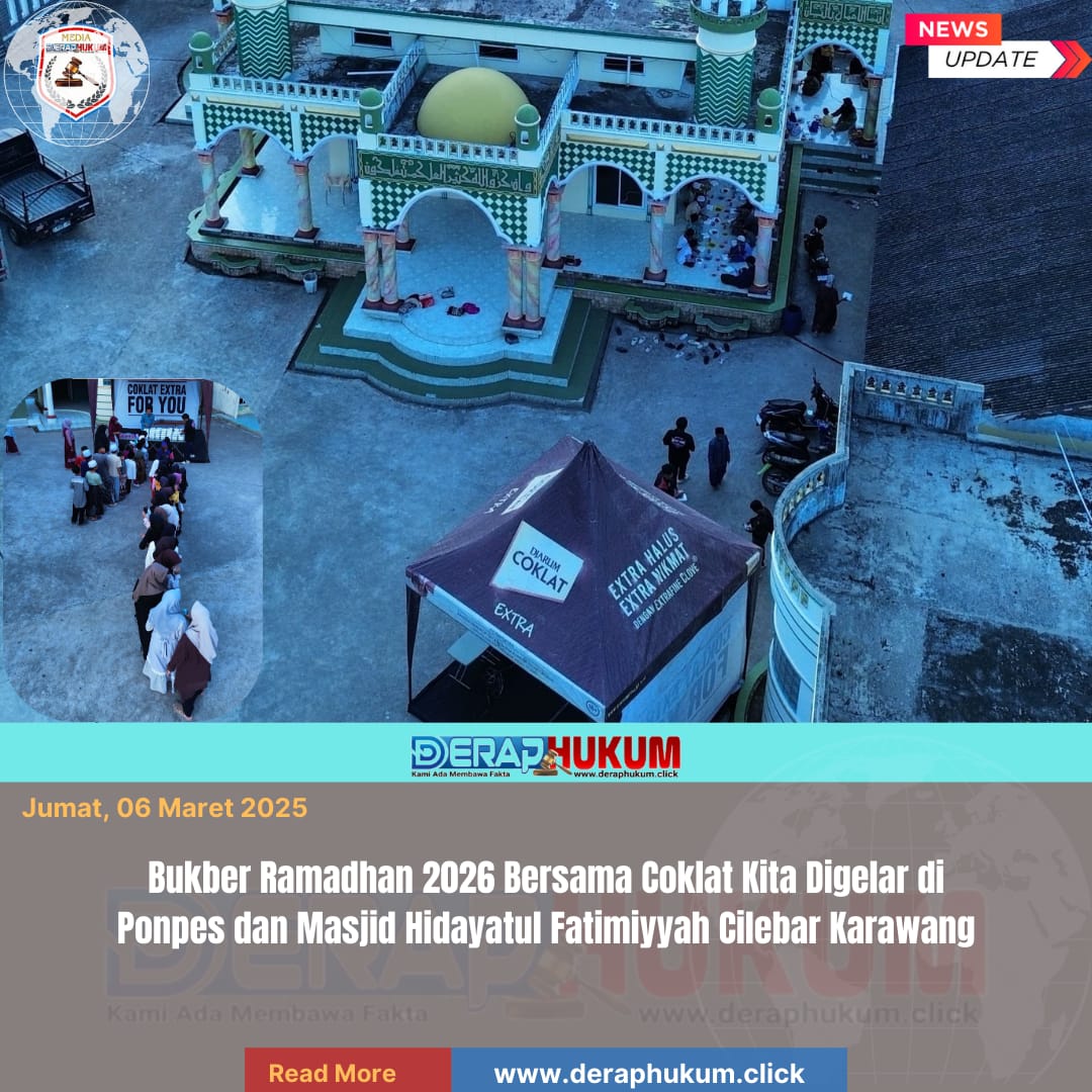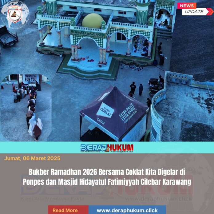 KARAWANG, Jawa Barat | Deraphukum.click | Suasana kebersamaan dan penuh kehangatan terasa dalam kegiatan Buka Bersama (Bukber) Ramadhan 2026 yang digelar bersama Coklat Kita di Pondok Pesantren dan Masjid Hidayatul Fatimiyyah, Desa Pusakajaya Utara, Kecamatan Cilebar, Kabupaten Karawang, Kamis (5/3/2026).