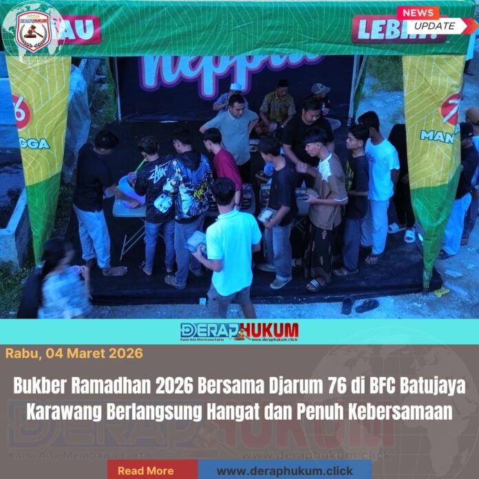 Karawang, Jawa Barat | DerapHukum.click | Suasana penuh kebersamaan dan kehangatan terasa dalam kegiatan Buka Bersama (Bukber) Ramadhan 2026 yang digelar bersama Djarum 76 di BFC Batujaya, Kecamatan Batujaya, Kabupaten Karawang, pada Selasa (3/3/2026).