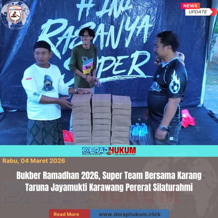 Karawang, Jawa Barat | Deraphukum.click | Suasana penuh kebersamaan dan kekeluargaan terasa dalam kegiatan buka puasa bersama (bukber) Ramadhan 2026 yang digelar bersama Super Team di Karang Taruna Jayamukti, Kabupaten Karawang, pada Senin (2/3/2026).