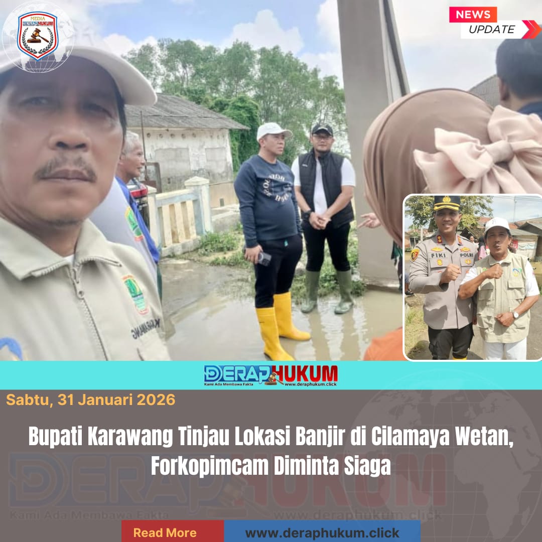 Bupati Karawang melakukan peninjauan langsung ke wilayah Kecamatan Cilamaya Wetan yang terdampak banjir, guna memastikan penanganan berjalan optimal dan kebutuhan masyarakat terpenuhi.
