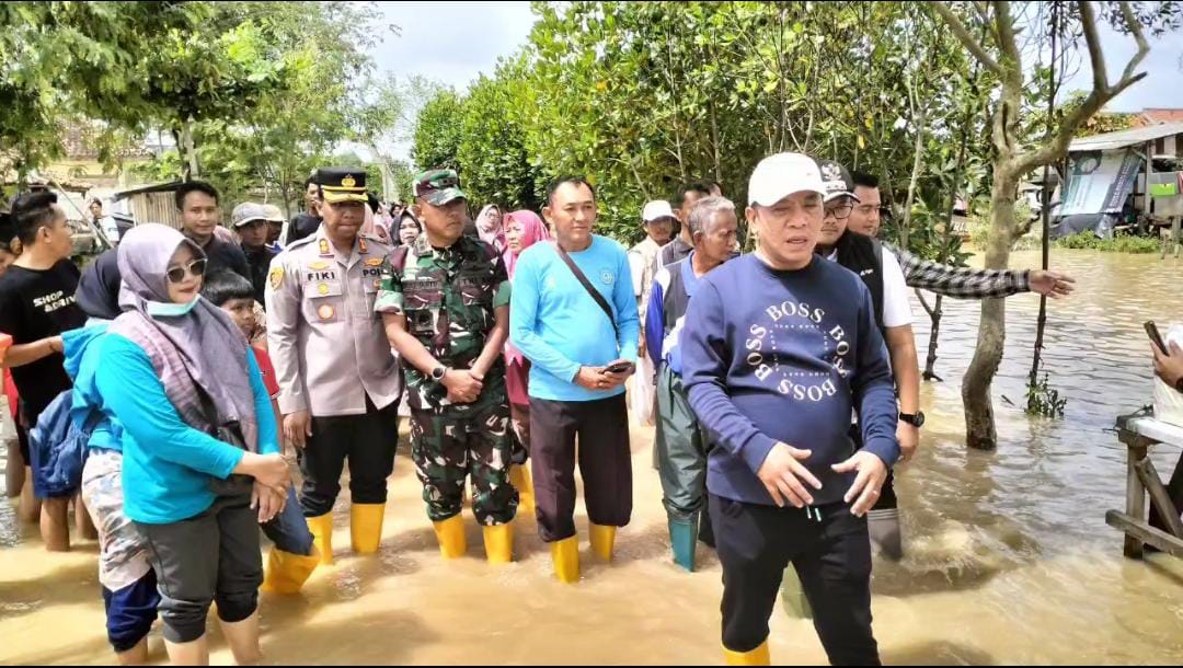 Didampingi Dandim 0604 Karawang, Kapolres Karawang, Camat Cilamaya Wetan, BPBD Karawang, serta unsur terkait lainnya, Bupati menyusuri jalan di sepanjang tanggul yang jebol sambil melakukan monitoring dan pengecekan lapangan. Rombongan tampak berdialog langsung dengan petugas dan aparat di lokasi guna memastikan langkah penanganan yang akan dilakukan.