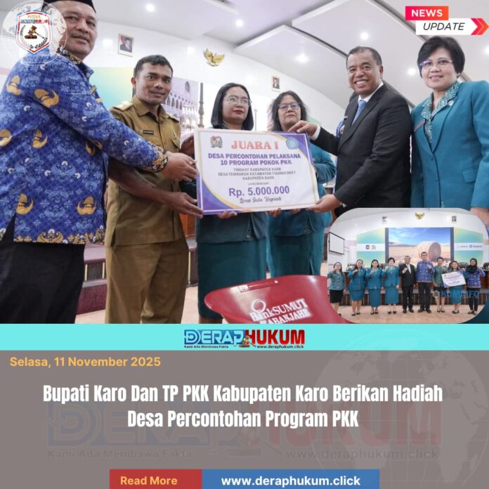 Kegiatan yang dirangkai dengan Penyerahan Hadiah Lomba Desa Percontohan Pelaksana 10 Program Pokok PKK Kabupaten Karo Tahun 2025 ini berlangsung di Aula Kantor Bupati Karo, Senin (10/11/2025).