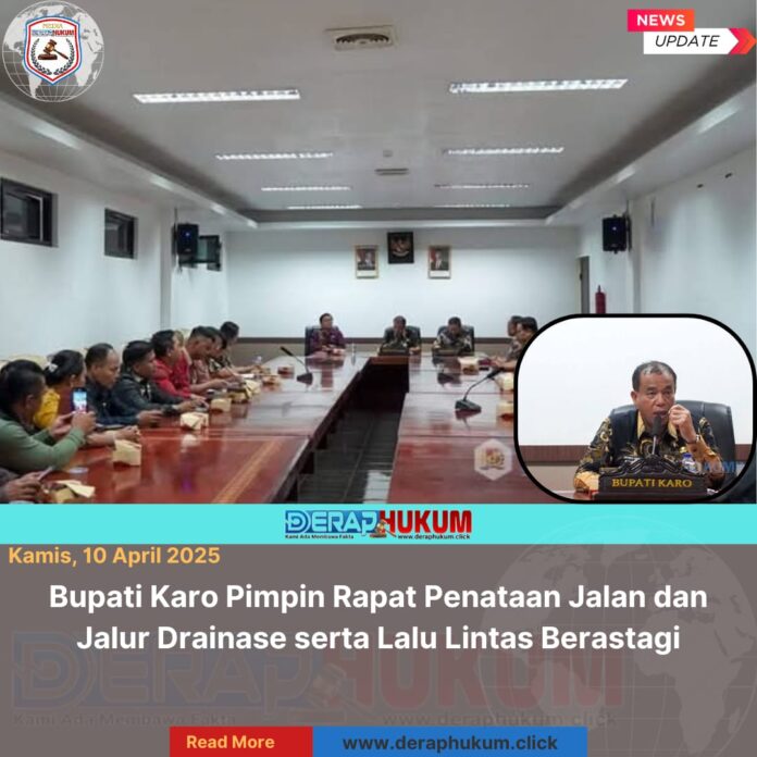 Karo, Sumatera Utara l Deraphukum.click l Bupati Karo Brigjen Pol (Purn) Dr. dr. Antonius Ginting, SP.OG., M.Kes., didampingi Wakil Bupati Karo Komando Tarigan, SP memimpin Rapat Penataan Jalan, Jalur Drainase dan Lalu Lintas Berastagi yang dilaksanakan di ruang rapat Bupati Karo, Jl. Jamin Ginting No.17 Kabanjahe. Kamis, (10/04/2025)
