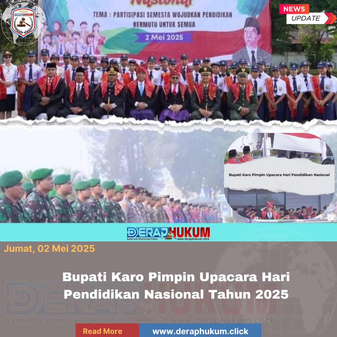 Pemerintah Kabupaten Karo juga ikut serta memperingati hari Pendidikan Nasional tahun 2025 yang dipimpin oleh Bupati Karo Brigjen Pol (Purn) Dr. dr. Antonius Ginting, Sp.OG., M.Kes., dilaksanakan di halaman Kantor Bupati Karo, jalan Jamin Ginting no.17 Kabanjahe, (Jumat, 2 Mei 2025).