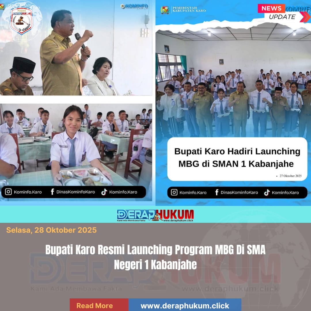 Pemerintah Kabupaten (Pemkab) Karo melalui Satuan Tugas Percepatan Penyelenggaraan Program Makan Bergizi Gratis (Satgas P3 MBG) melaksanakan kegiatan Launching dan Penyerahan Perdana Paket Makan Bergizi Gratis (MBG) bagi Siswa – Siswi SMA Negeri 1 Kabanjahe, Kamis (27/10/2025).
