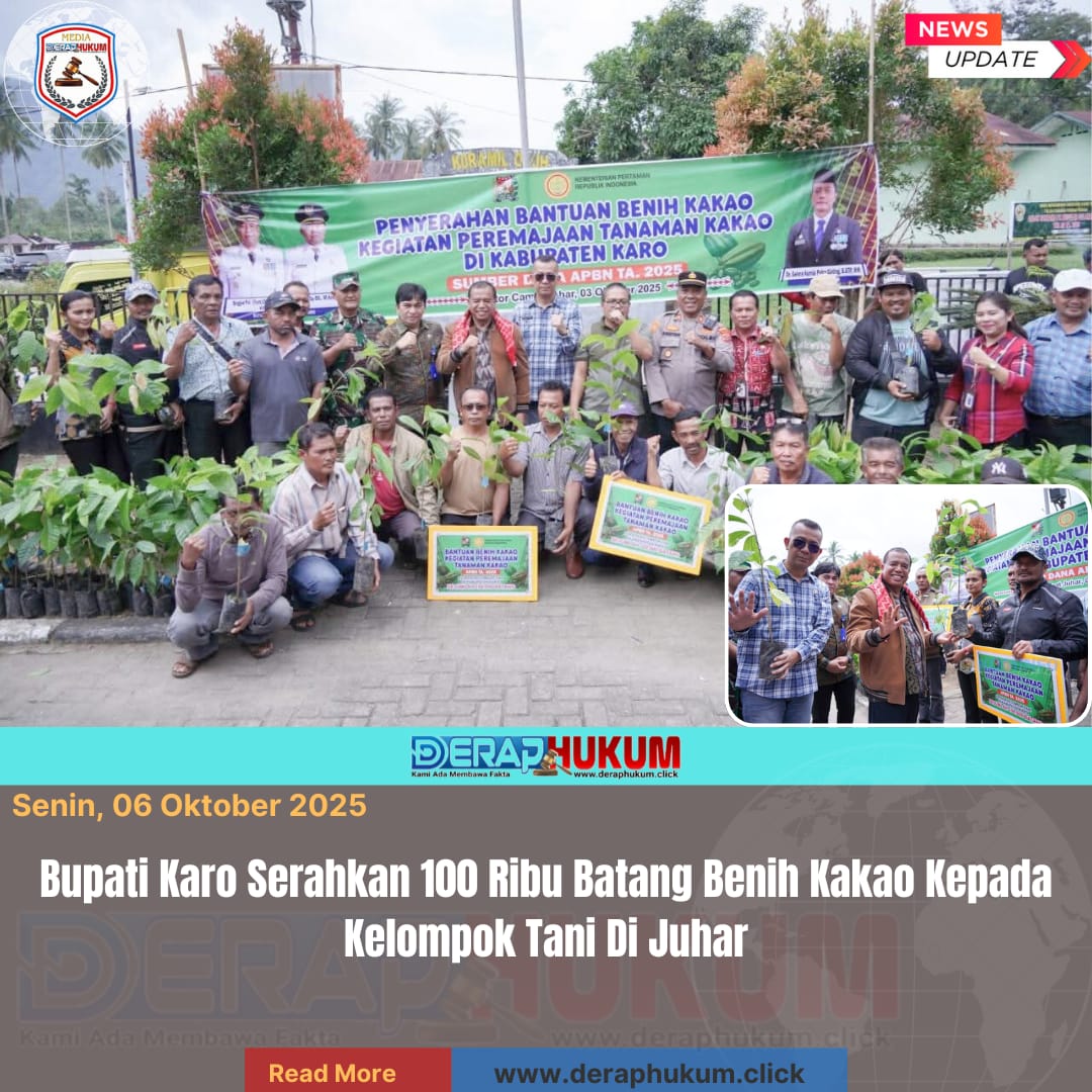 Bantuan benih Kakao tersebut disalurkan kepada Kelompok Tani yang tersebar di Kecamatan Juhar, Tigabinanga, Munte, Mardingding, dan Tiganderket.