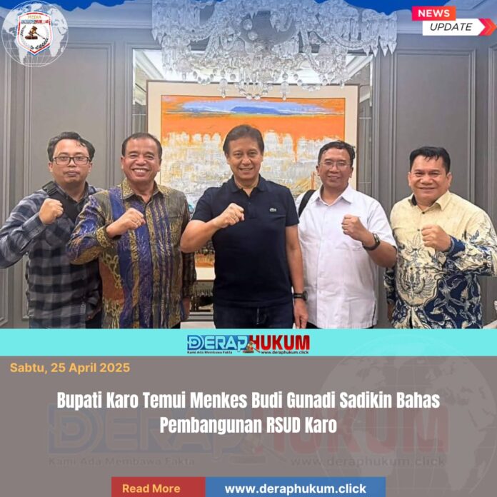 KARO, l Deraphukum.click l Bupati Karo, Brigjen Pol (Purn) Dr. dr. Antonius Ginting, Sp.OG, M.Kes melakukan pertemuan strategis dengan Menteri Kesehatan RI, Budi Gunadi Sadikin, guna membahas rencana besar pembangunan Rumah Sakit Umum Daerah (RSUD) Karo. Pertemuan berlangsung di Jakarta, pada Kamis (23/04/2026). Pertemuan ini menjadi langkah krusial bagi masa depan infrastruktur kesehatan di Tanah Karo.