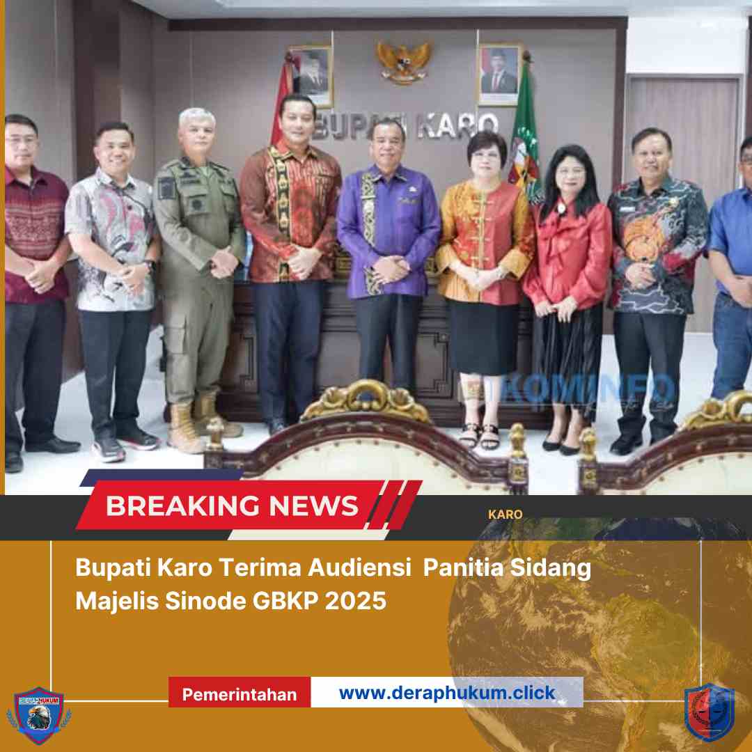 KARO, l Deraphukum.click l Bupati Karo, Brigjen Pol (Purn) Dr. dr. Antonius Ginting, Sp.OG., M.Kes., menerima kunjungan audiensi dari Panitia Sidang Majelis Sinode Gereja Batak Karo Protestan (GBKP) Tahun 2025 di Kantor Bupati Karo, Jumat (21/03/2025).