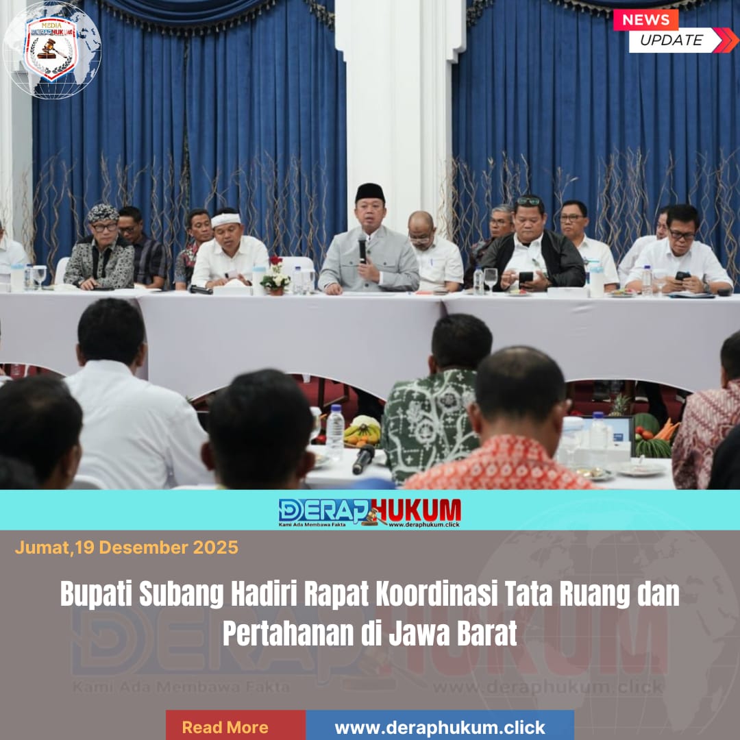 Bandung,Jawa Barat l Deraphukum.Click l Bupati Subang, Reynaldy Putra Andita menghadiri Rapat Koordinasi Tata Ruang dan Pertanahan di Jawa Barat. Bertempat di Aula Gedung Sate, Kota Bandung, pada Kamis (18/12/2025).