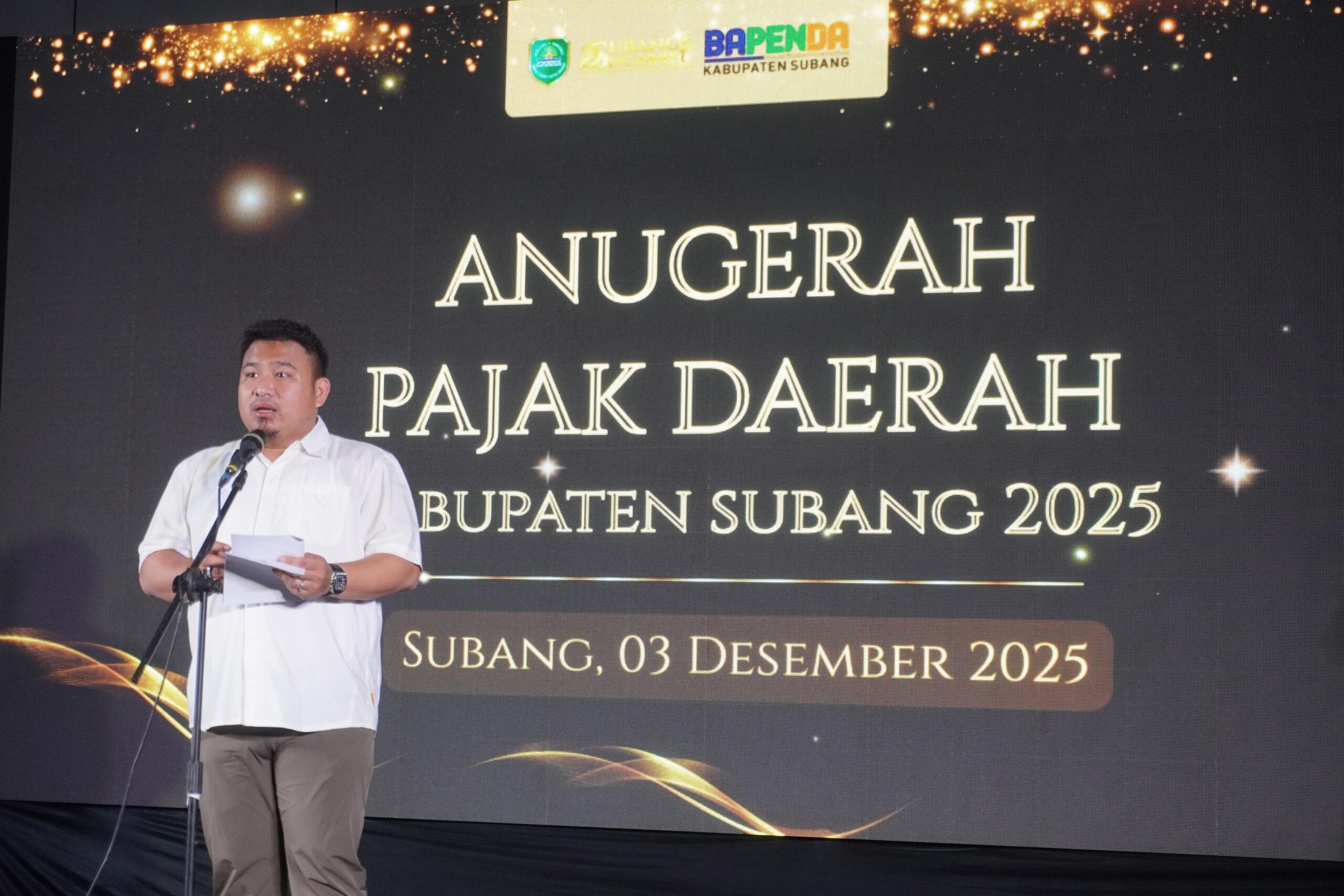 Subang,Jawa Barat l Deraphukum.Click l Bupati Subang Reynaldy Putra Andita Budi Raemi hadir bersama Sekretaris Daerah untuk menyerahkan langsung penghargaan dan menyampaikan arah kebijakan fiskal Subang pada Anugerah Pajak Daerah Tahun 2025 di Ballroom Sawala Ageung, Laska Hotel Subang, Rabu (3/12/2025).