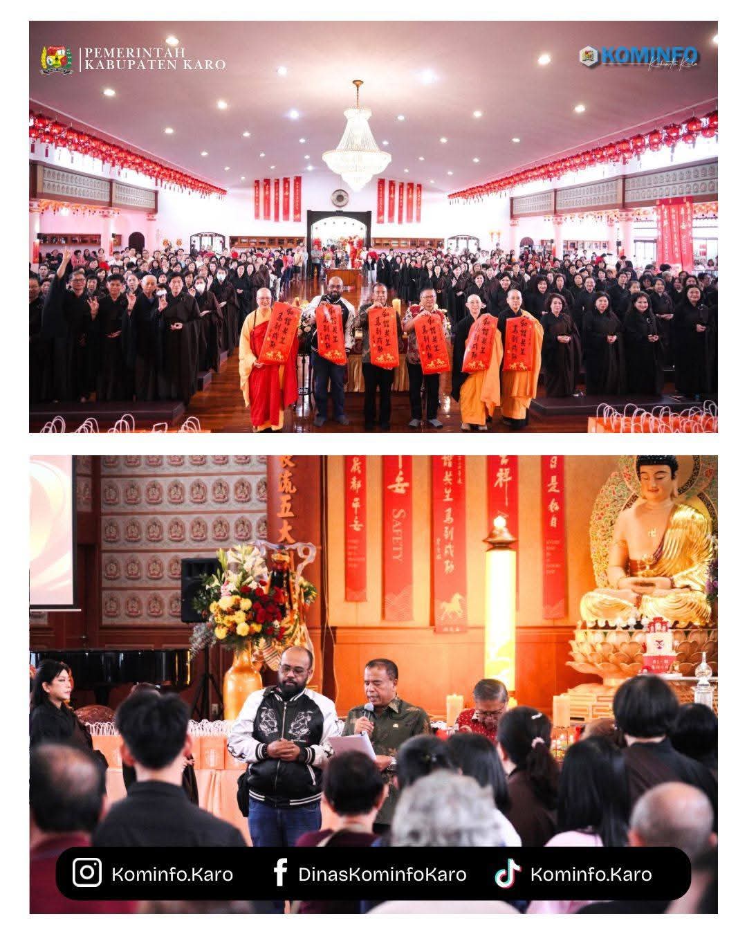 Bupati Karo, Brigjen Pol (Purn) Dr. dr. Antonius Ginting, Sp.OG., M.Kes., dan Wakil Bupati Karo, Komando Tarigan, S.P., menghadiri perayaan hari Imlek di Vihara Dharma Shanti Berastagi pada Kamis, (19/02/2026).