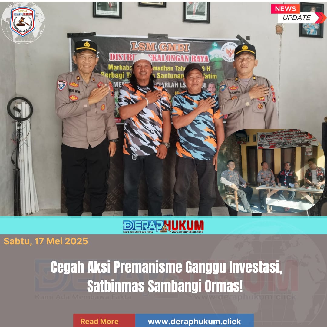 Pekalongan,Jawa Tengah | DerapHukum.Click | 17/05/2025,Polres Pekalongan Kota – Polda Jateng – Satgas Binmas Polres Pekalongan Kota melaksanakan sambang dan binluh kamtibmas kepada beberapa Ormas di Kota Pekalongan dalam rangka pencegahan dan pemberantasan aksi premanisme di Kota Pekalongan.