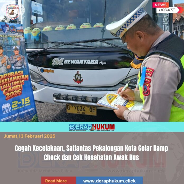 Pekalongan Kota, | Deraphukum.click | Polres Pekalongan Kota – Polda Jateng – Polres Pekalongan Kota melalui Satgas Kamseltibcarlantas dan Subsatgas Dokkes Ops Keselamatan Candi 2026 kembali menggelar inspeksi keselamatan kendaraan angkutan umum (ramp check) dan pemeriksaan kesehatan di Terminal Tipe A Kota Pekalongan, Rabu (11/2/2026).