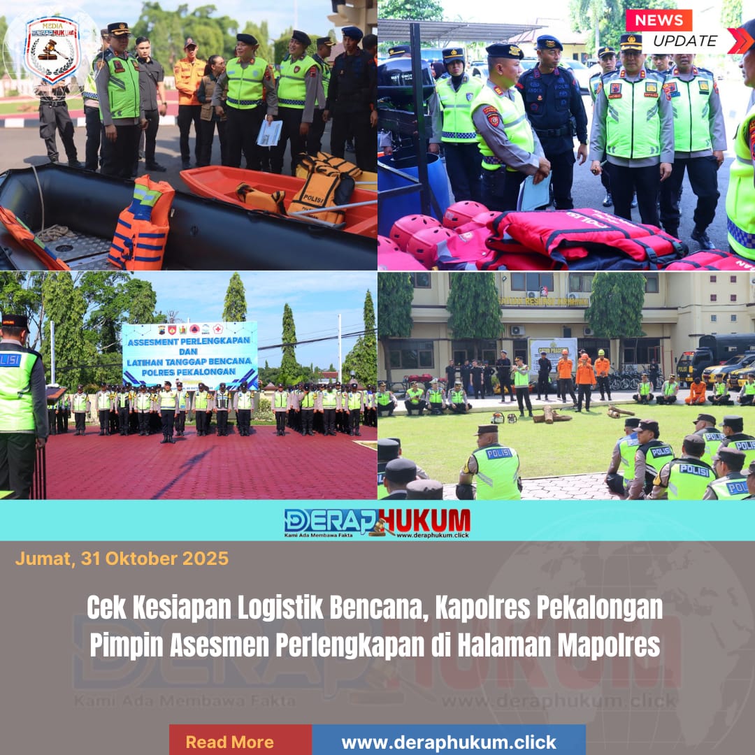 Pekalongan,Jawa Tengah | Deraphukum.click | Polres Pekalongan – Polda Jateng – Polres Pekalongan bergerak cepat merespons potensi cuaca ekstrem di Jawa Tengah. Hari ini, Kamis (30/10/2025), digelar apel asesmen perlengkapan dan Latihan tanggap bencana di halaman Mapolres Pekalongan. Kegiatan ini merupakan tindak lanjut dari rapat koordinasi kesiapsiagaan bencana yang digelar sehari sebelumnya.