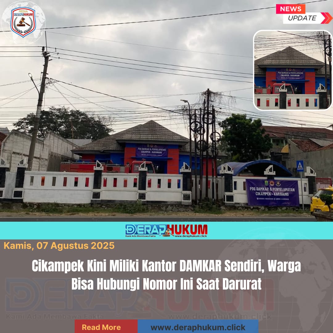 Karawang, Jawa barat | Deraphukum.click | Cikampek, Kabar baik datang bagi warga Cikampek dan sekitarnya. Kini, wilayah Cikampek resmi memiliki kantor pemadam kebakaran (DAMKAR) sendiri yang siap siaga melayani masyarakat dalam menghadapi berbagai kondisi darurat kebakaran.